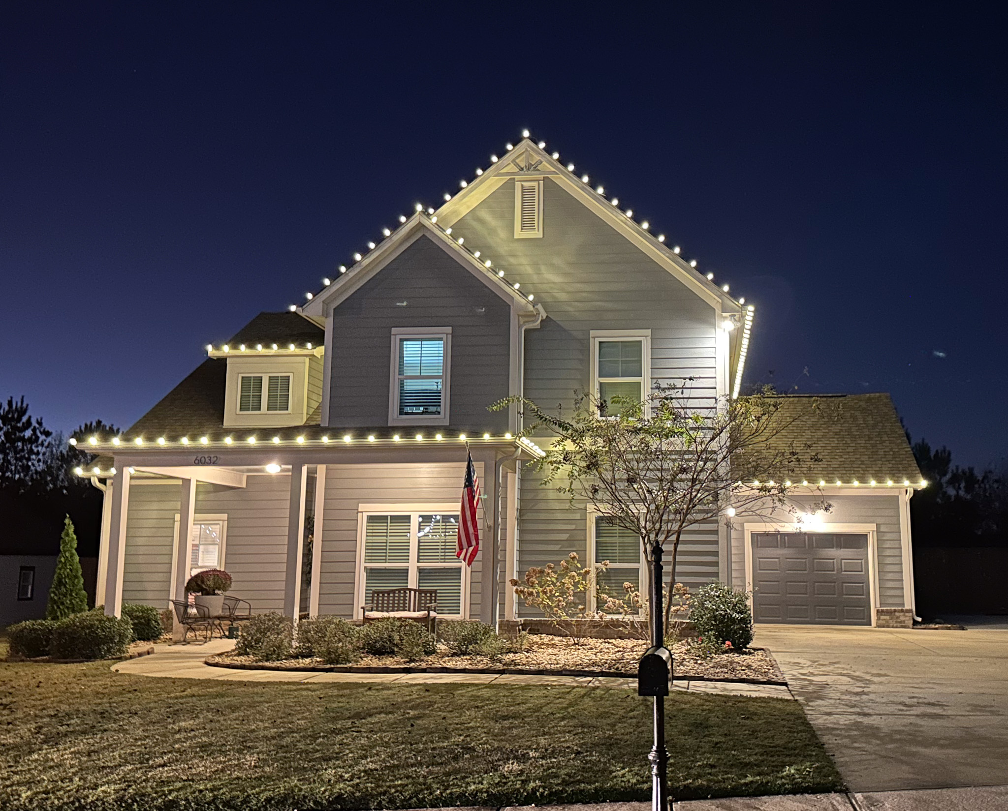 - Commercial-Grade LED Lights: We use high-quality, energy-efficient LED bulbs that are custom-cut to fit your roofline, ensuring perfectly clean lines and maximum durability against Alabama weather.